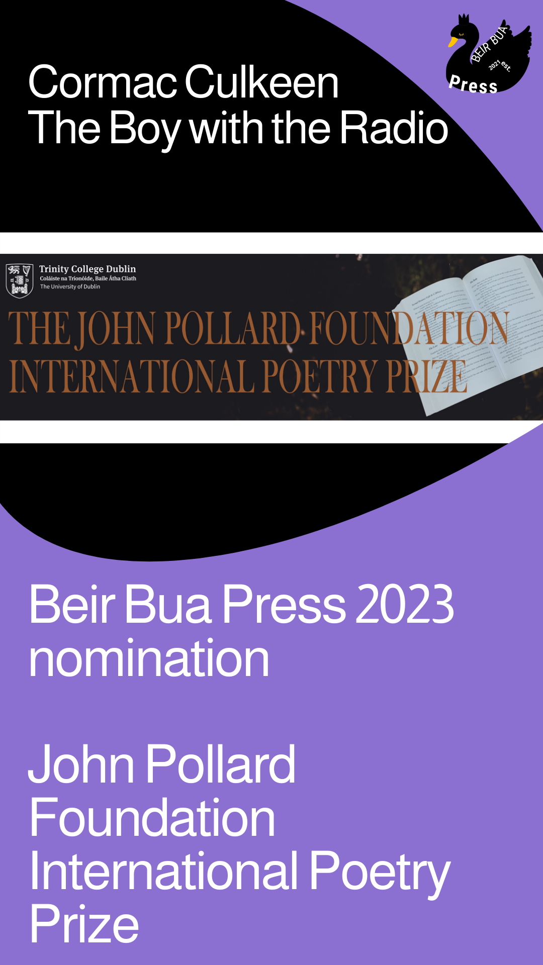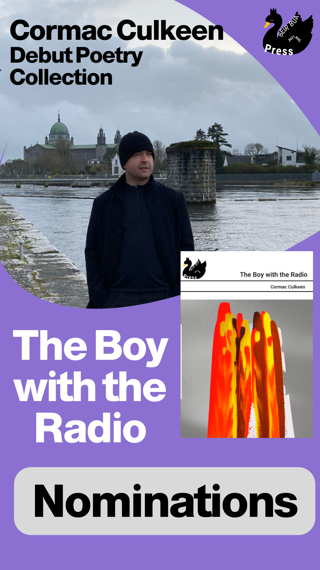 Cormac’s first collection of poetry, The Boy with the Radio, was published in May 2022 by Beir Bua Press. You can order your copy here : https://beirbuapress.com