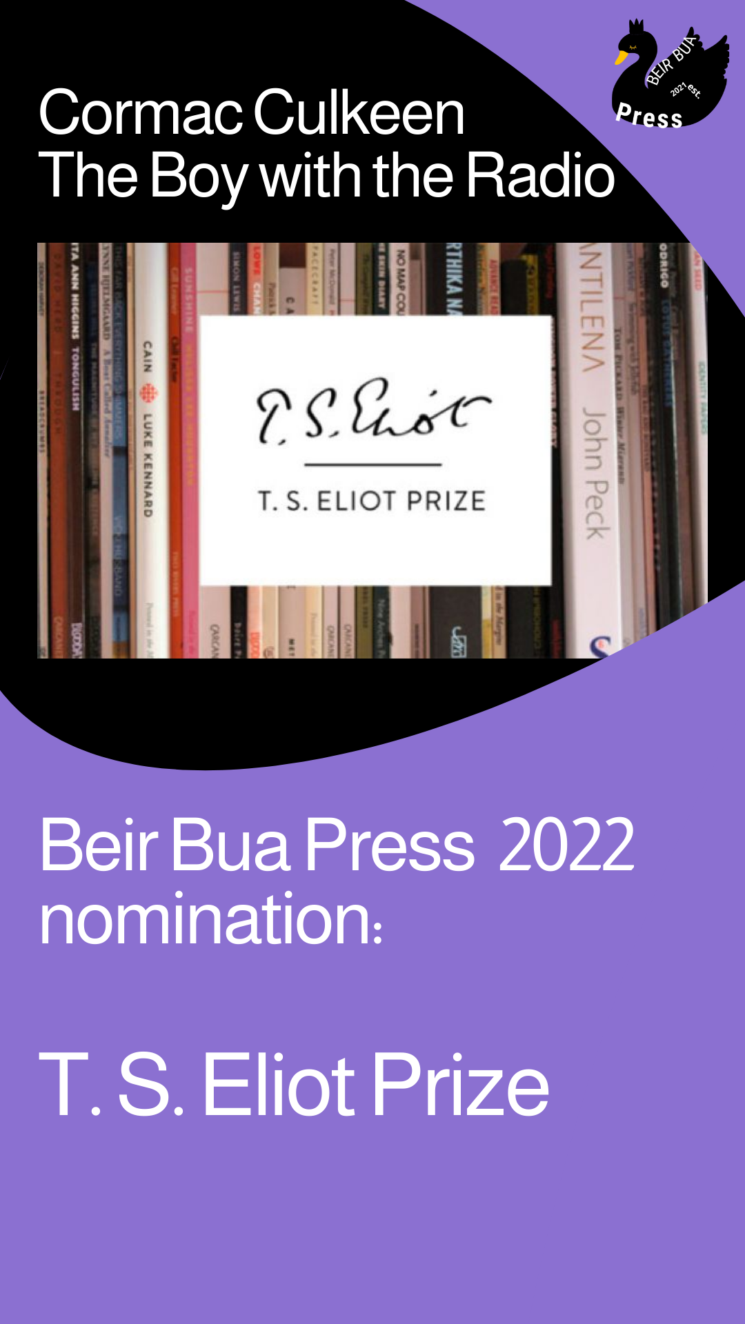 The collection was nominated by Beir Bua Press for the John Pollard Foundation International Poetry and the T. S. Eliot Prize.